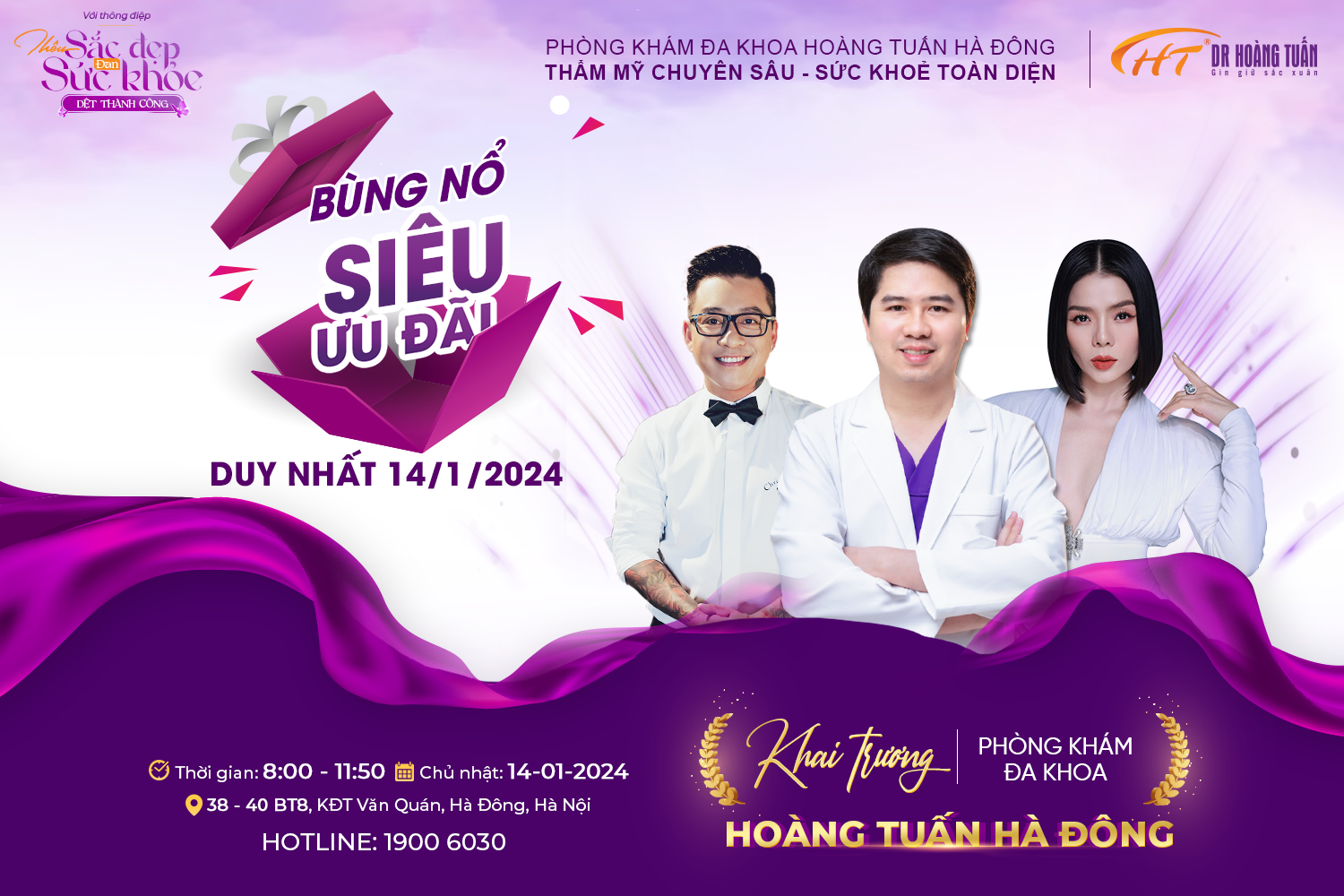 Đối với Dr Hoàng Tuấn từng năm là một hành trình đầy ý nghĩa, và mỗi bước tiến trong sự phát triển của chúng tôi không thể nào hoàn thành mà thiếu đi sự đồng hành và ủng hộ của Quý khách hàng. Do đó, chúng tôi càng hiểu sâu sắc rằng sứ mệnh của mình sẽ không chỉ dừng lại ở việc THẨM MỸ CHUYÊN SÂU về phẫu thuật, nha khoa, da liễu mà hơn hết là phục vụ được nhiều đối tượng khách hàng hơn, giúp được nhiều người hơn. Vì vậy, năm 2024 đối với Dr Hoàng Tuấn sẽ mở ra một thập kỷ mới - một thập kỷ của CHĂM SÓC SỨC KHOẺ CHỦ ĐỘNG TOÀN DIỆN.