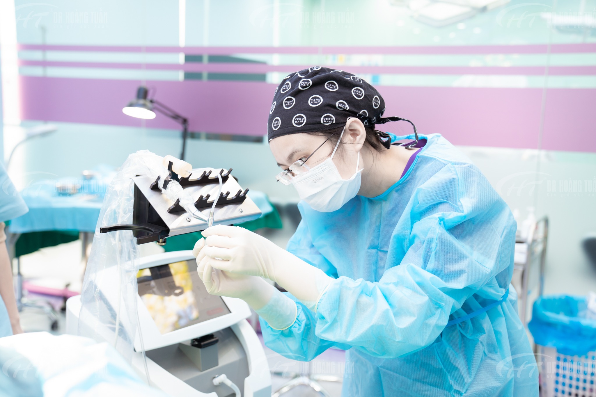Bước 1: Bác sĩ thăm khám vùng rụng tóc hói đầu, và kiểm tra khu vực lấy nang tóc