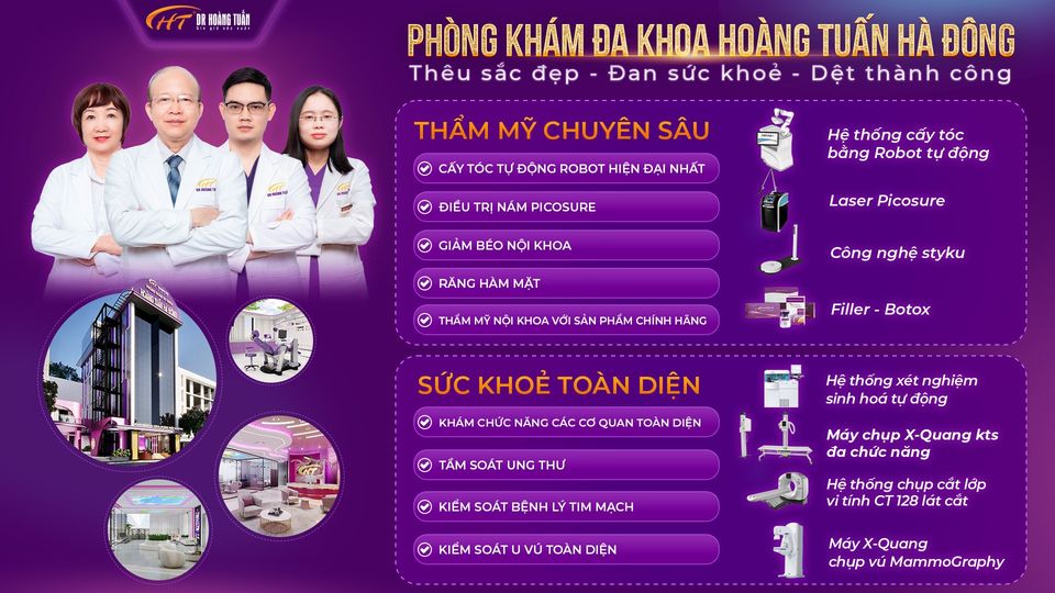 Thế giới có gì tốt, phòng khám Hoàng Tuấn đều có, với hệ thống máy: Máy CT 128 lớp cắt thế hệ mới nhất, Máy xquang kĩ thuật số, Hệ thống máy xét nghiệm sinh hóa – miễn dịch, huyết học, vi sinh, sinh học phân tử tự động Máy chụp Ct Combean Răng Hàm Mặt, Robot cấy tóc,... phòng khám đa khoa Hoàng Tuấn Hà Đông có lợi thế lớn về hệ thống máy móc, trang thiết bị tiên tiến giúp đông đảo người dân tiếp cận dịch vụ khám chữa bệnh chất lượng hàng đầu.