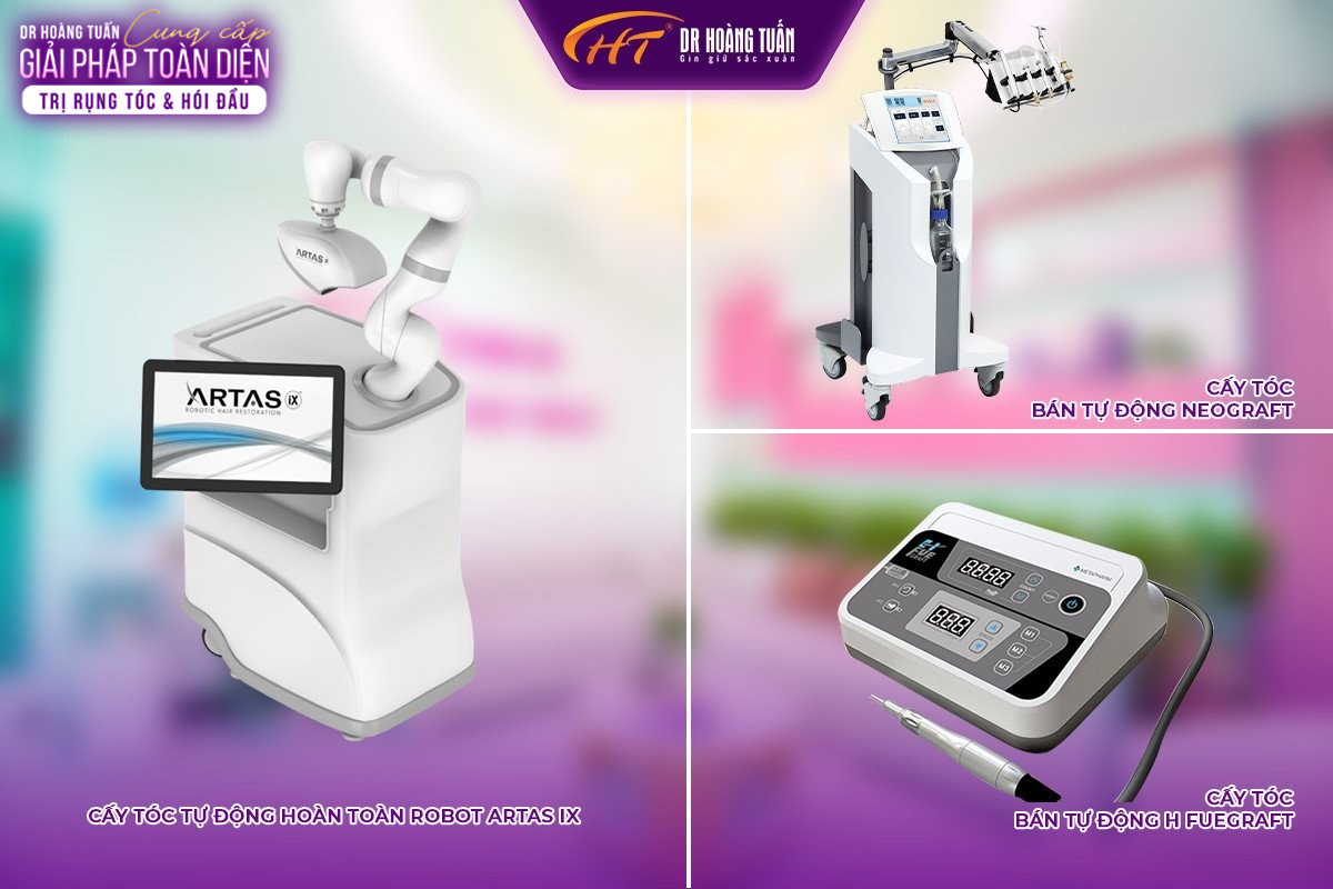 Hiện nay ở Việt Nam, Dr Hoàng Tuấn được biết đến là đơn vị đi đầu ứng dụng các công nghệ hiện đại, hàng đầu thế giới để kích thích nang tóc phát triển trong những trường hợp tóc thưa, mỏng và còn nang tóc. Với những trường hợp hói đầu, nang tóc bị thu nhỏ quá mức, mất nang tóc ( bỏng, sẹo sau chấn thương, phẫu thuật…) thì Dr Hoàng Tuấn có những trang thiết bị, công nghệ tiên tiến nhất để phục vụ quá trình cấy tóc.