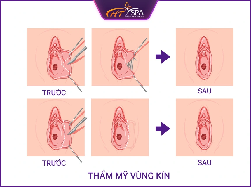 - Thu gọn môi bé (tạo hình môi bé): Kỹ thuật cắt tạo hình môi bé được thực hiện tỉ mỉ nhằm loại bỏ phần da thừa, tái cấu trúc gọn gàng, mềm mại và cân đối hơn. Công nghệ hiện đại giúp hạn chế chảy máu, không để lại sẹo và bảo toàn cảm giác.