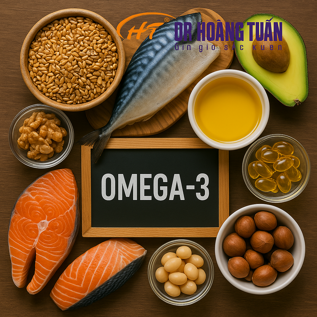 Thực phẩm gợi ý: Cá hồi, cá thu, hạt lanh, hạt chia, dầu cá, quả óc chó.