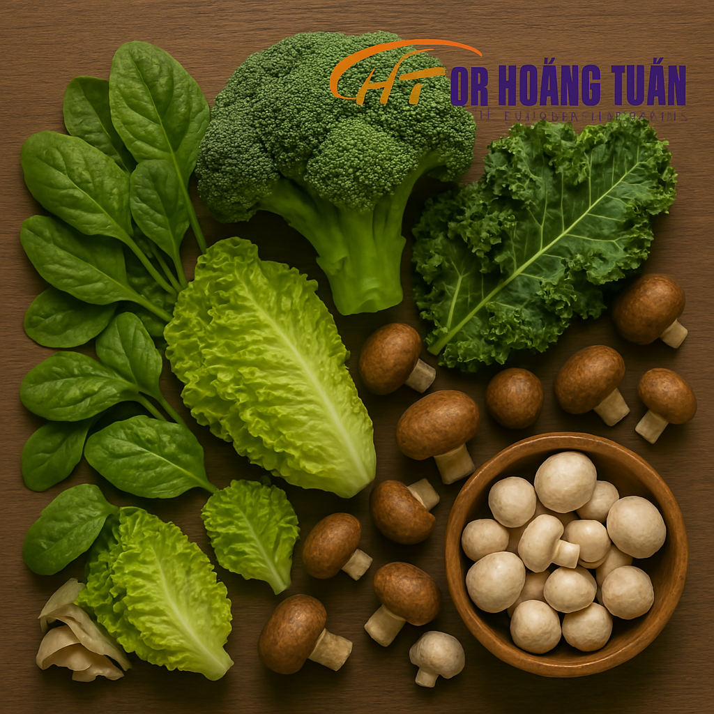 Rau xanh và nấm – Giàu chất xơ, hỗ trợ cân bằng nội tiết tố